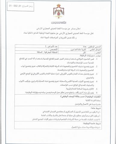 تعلن مؤسسة الخط الحديدي الحجازي الأردني عن حاجتها لتعبئة الوظيفة الشاغرة التالية سائق سيارة